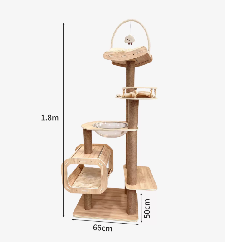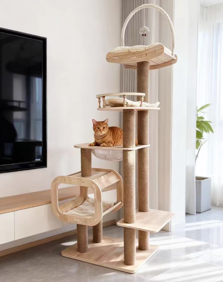 貓別墅通風清涼實木劍麻柱高層貓爬架雙瞭望台 D1 (太空艙6層款|180cm)