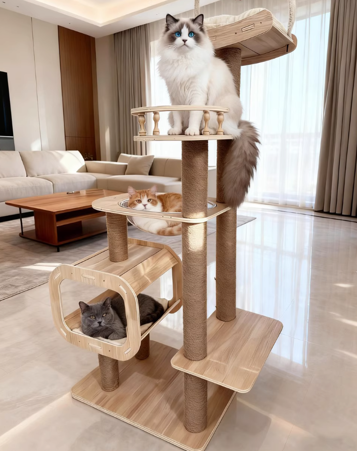 厚實實木大貓窩,貓咪快樂玩耍。