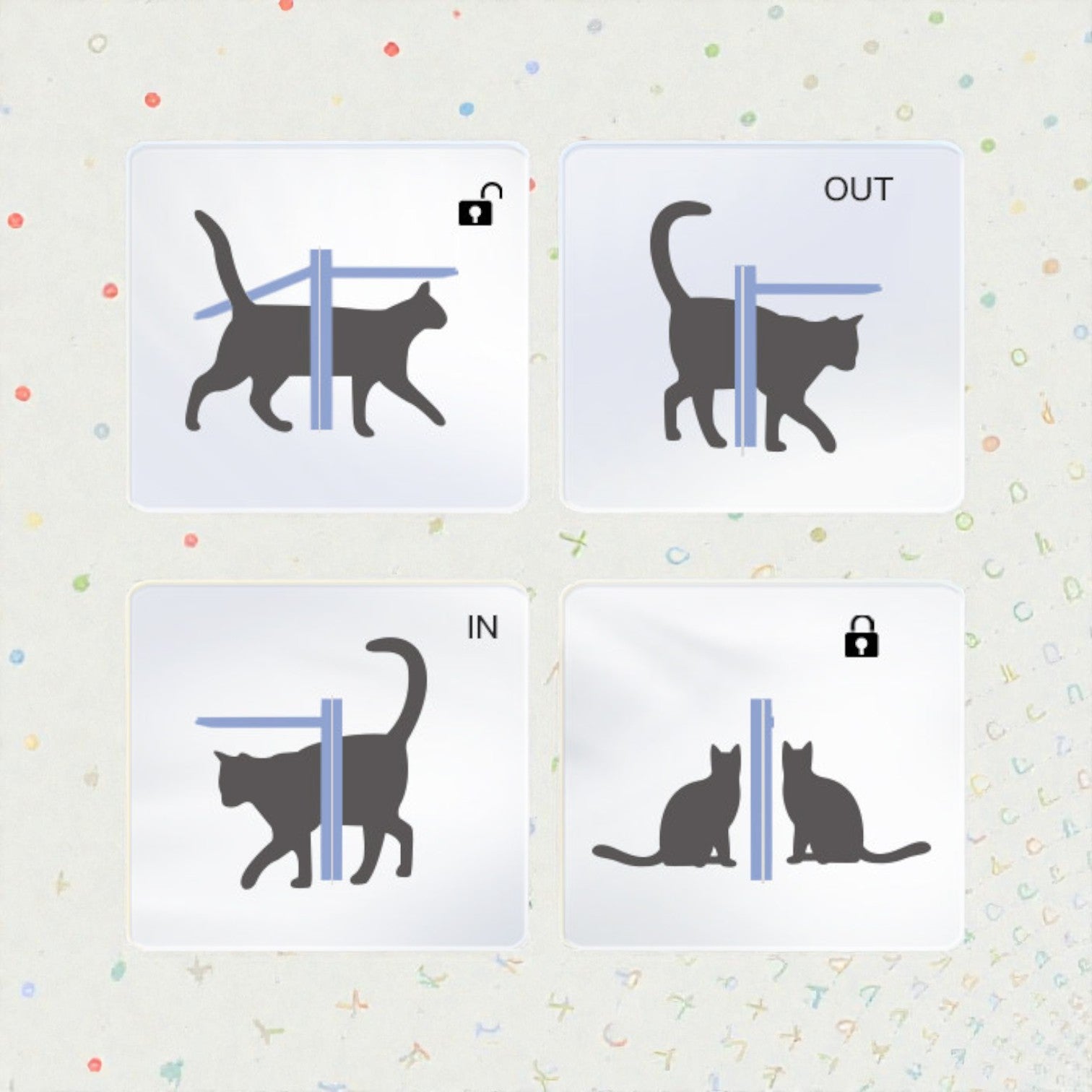 - 四向設定:提供「自由進出、只進不出、只出不進、全封閉」四種模式,管理寵物活動更輕鬆。