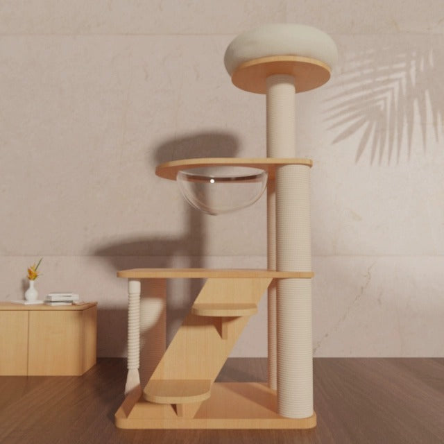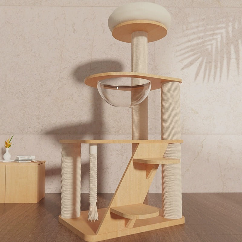 橡木清爽通風清涼實木劍麻柱貓爬架 E6 (太空艙6層款|130cm)