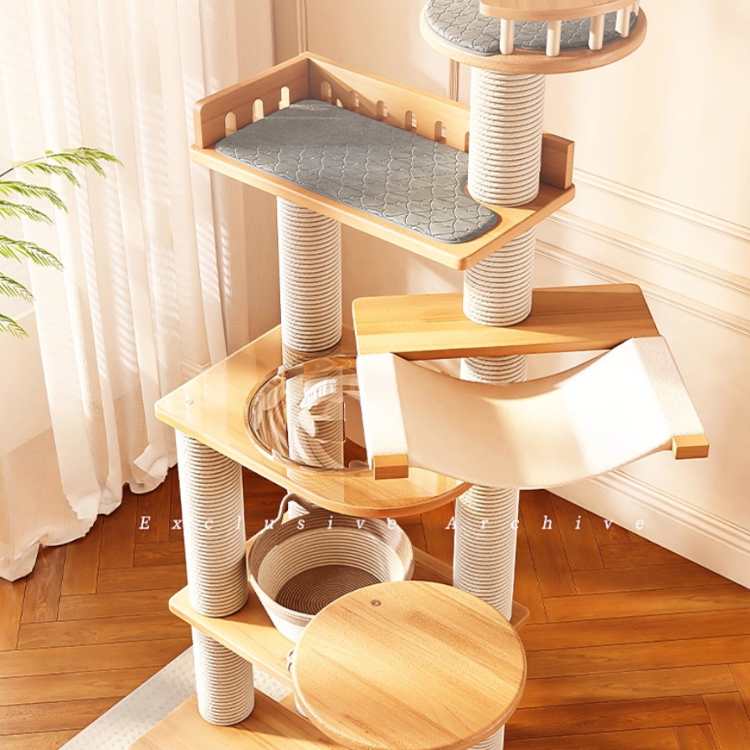 厚實實木大貓窩,貓咪快樂玩耍。
