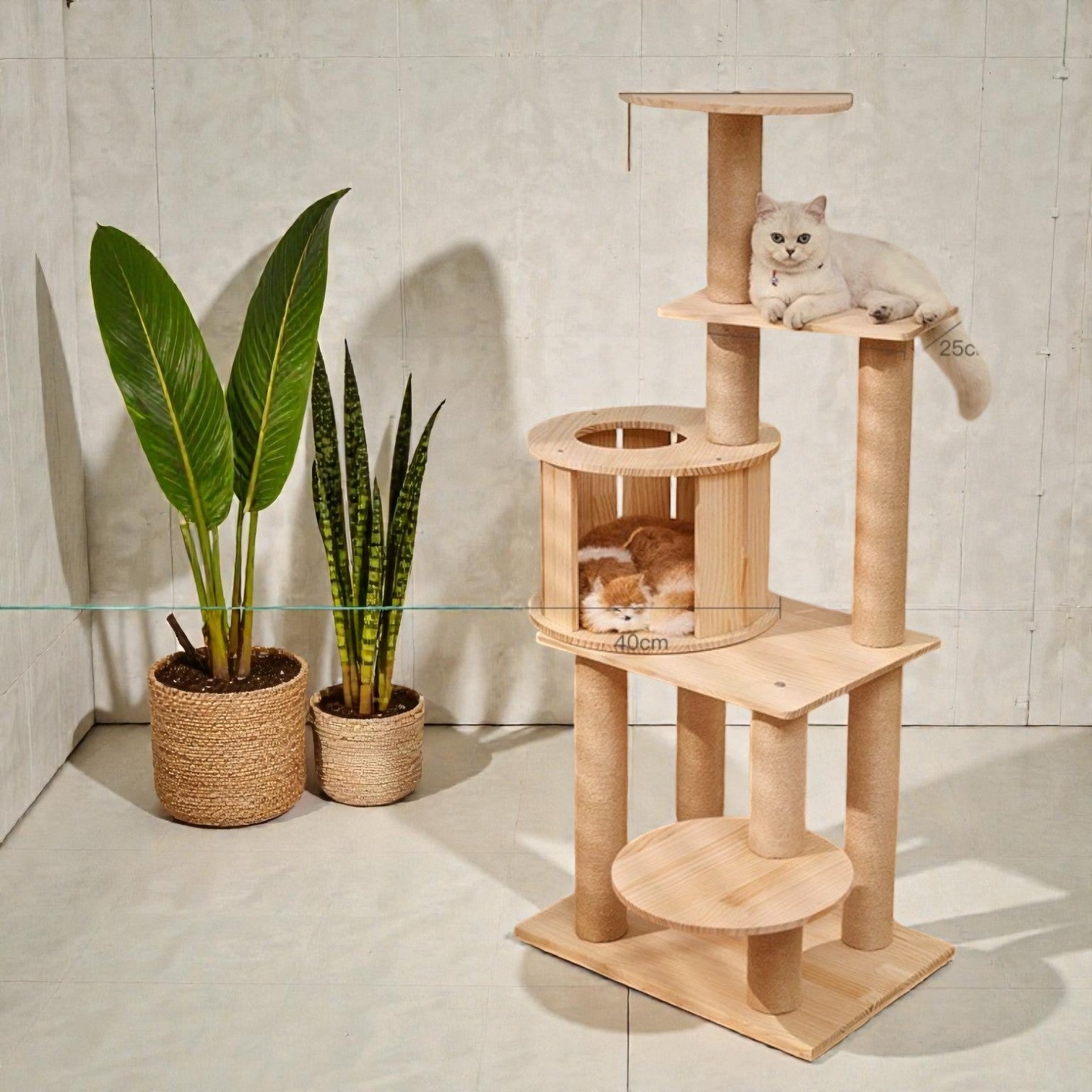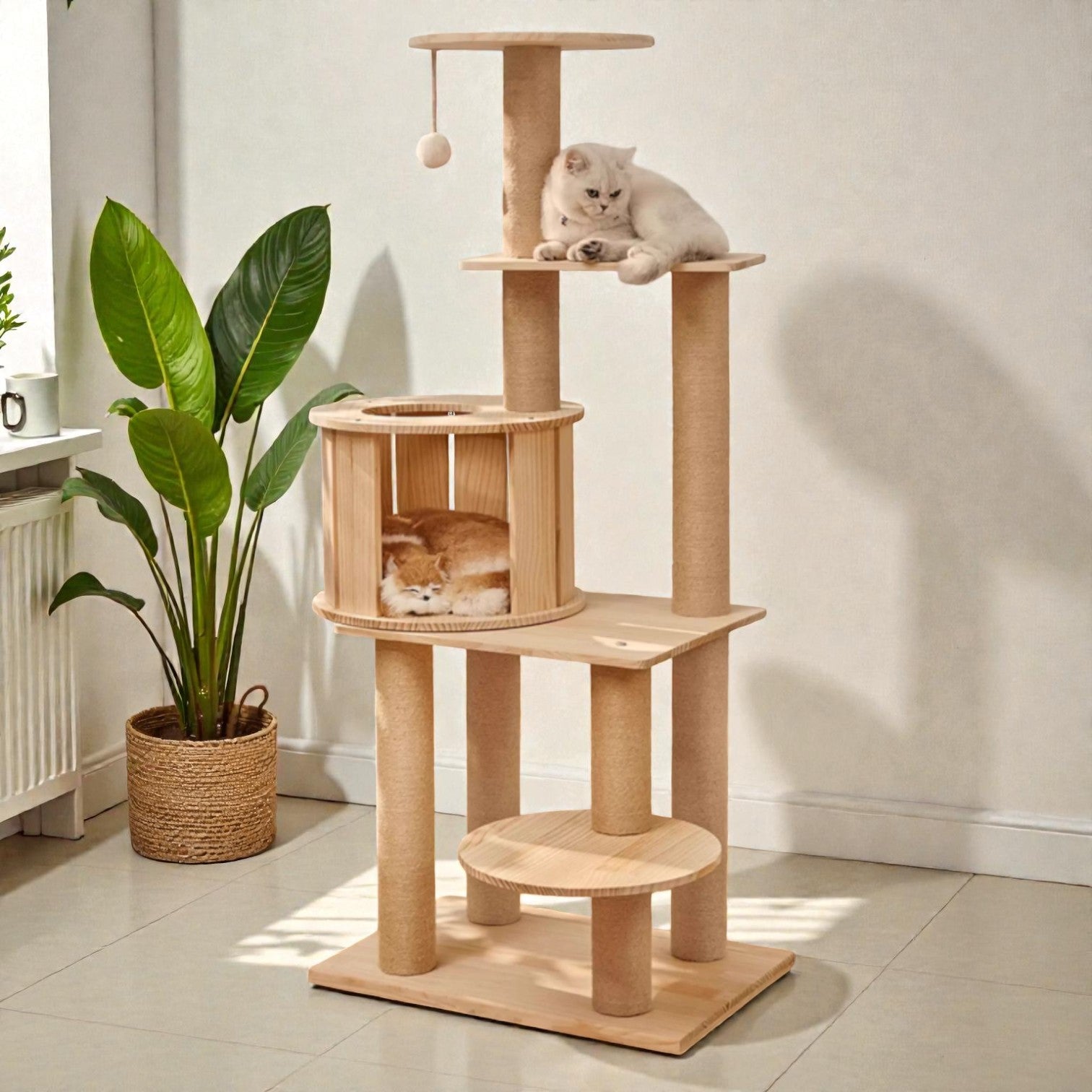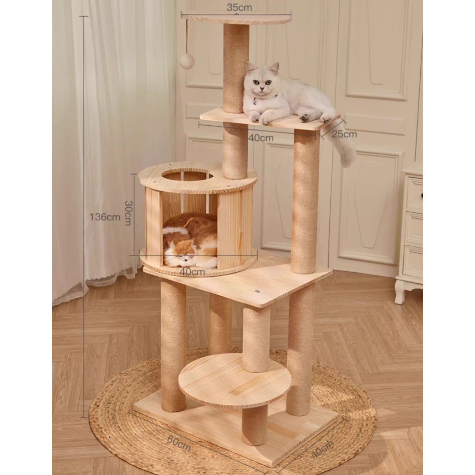 橡木清爽通風清涼實木劍麻柱貓爬架 (4層款|136cm)