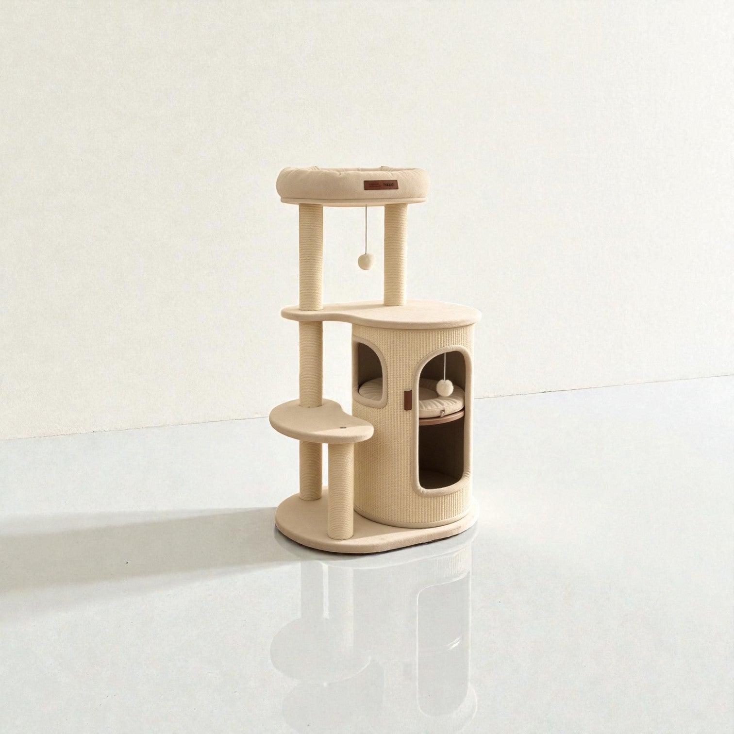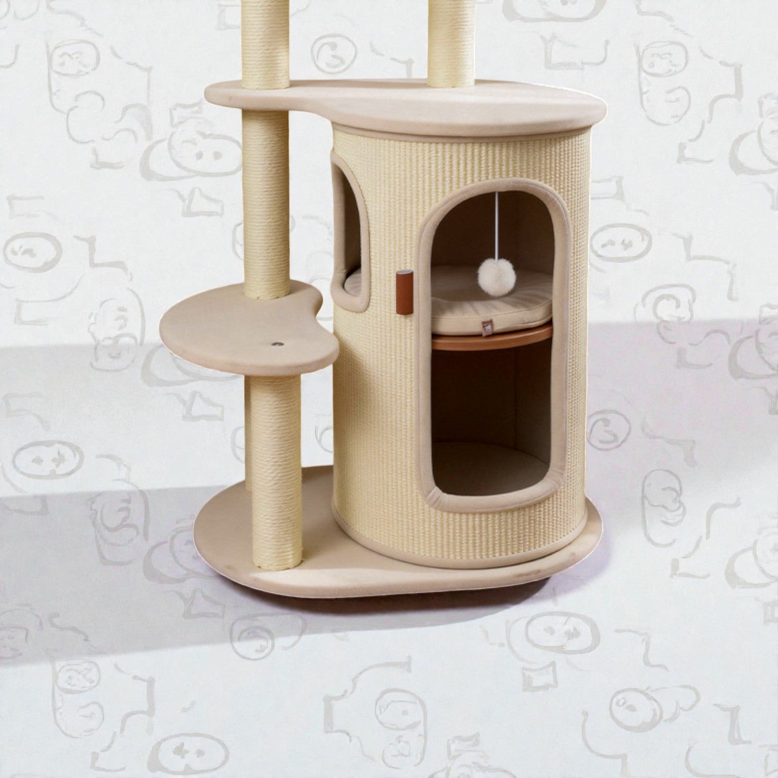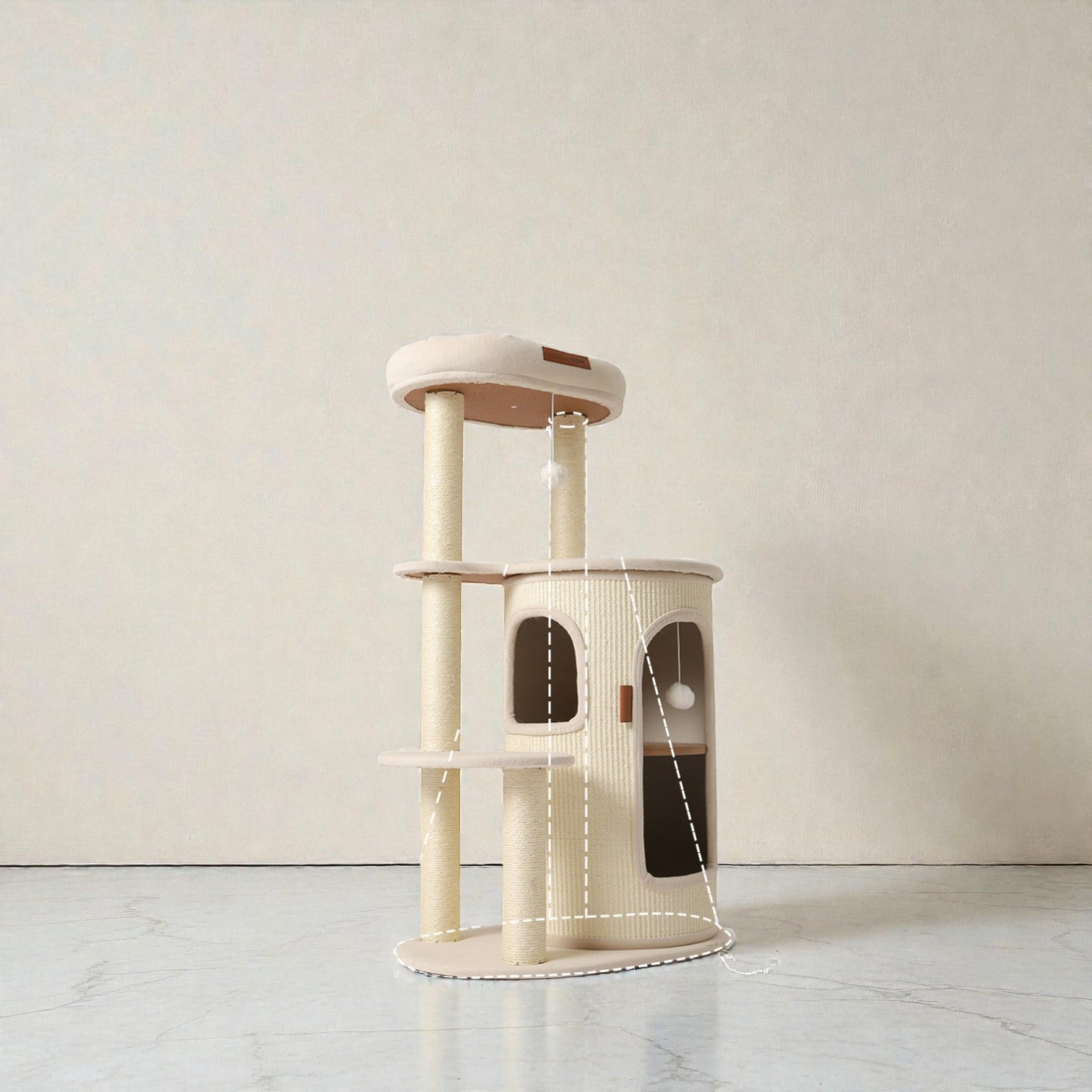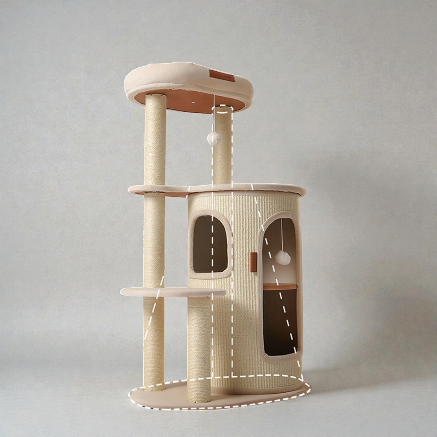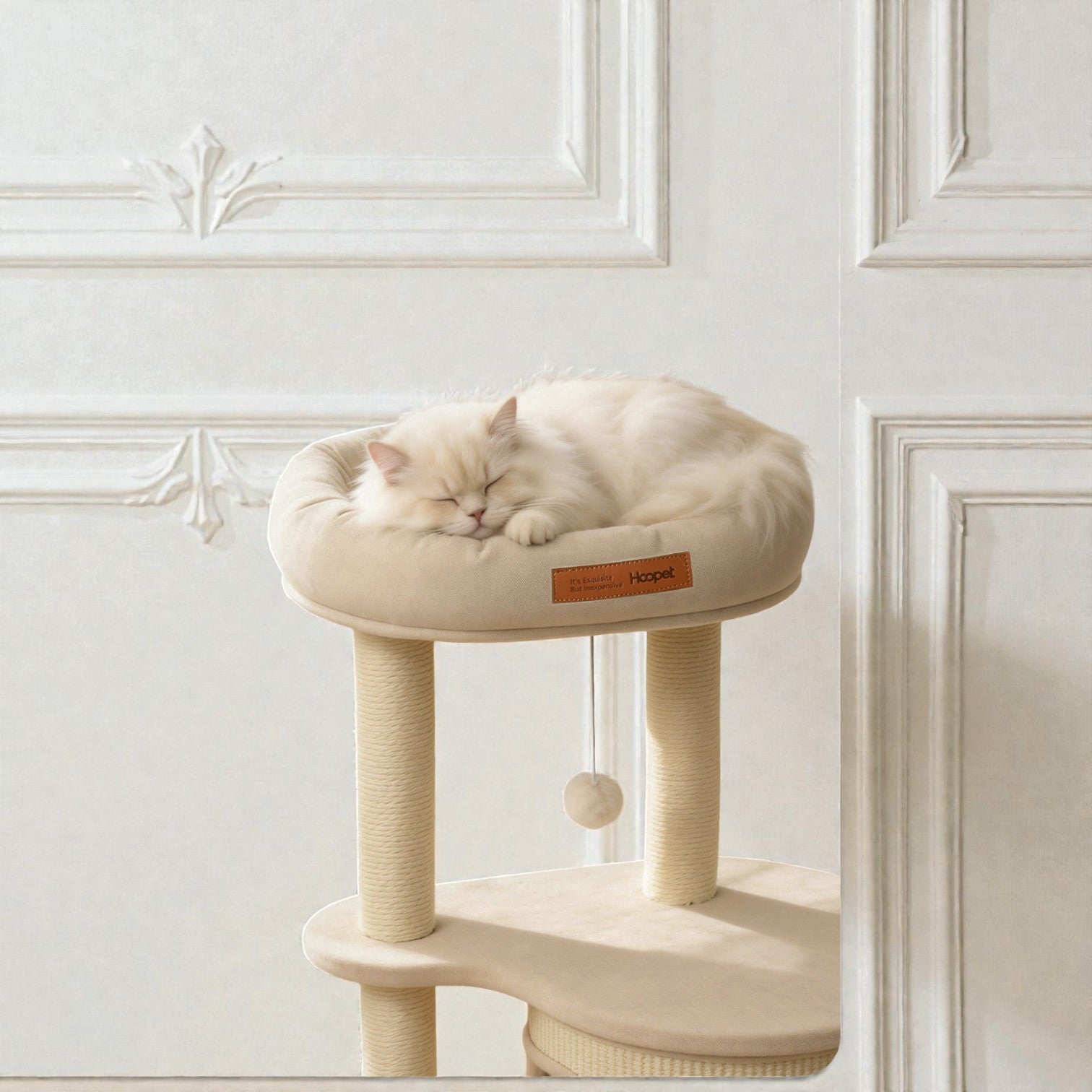 針對香港居住環境有限而設計,Hoopet 假日系列將「垂直空間」利用到極致。這款貓別墅集睡眠、磨爪、攀爬與觀景於一身,不僅是寵物的樂園,其優雅的仿木與棉麻質感,更能完美融入現代簡約、北歐或日系家居風格。