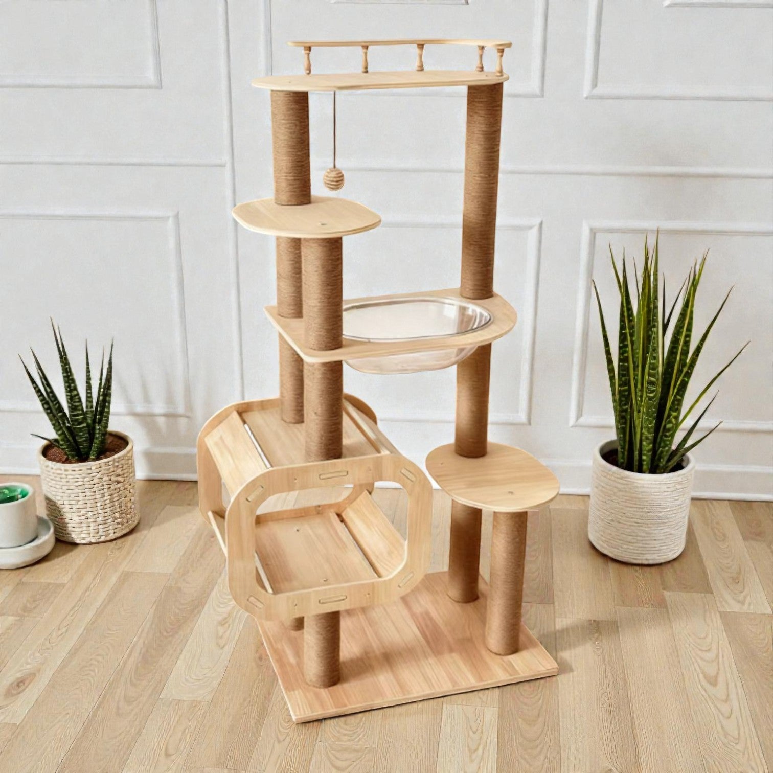 Natural oak provides ample weight and stability; selected imported jute rope is sturdy, wear-resistant, thick, and stable, not easily shaken, deformed, or moldy.