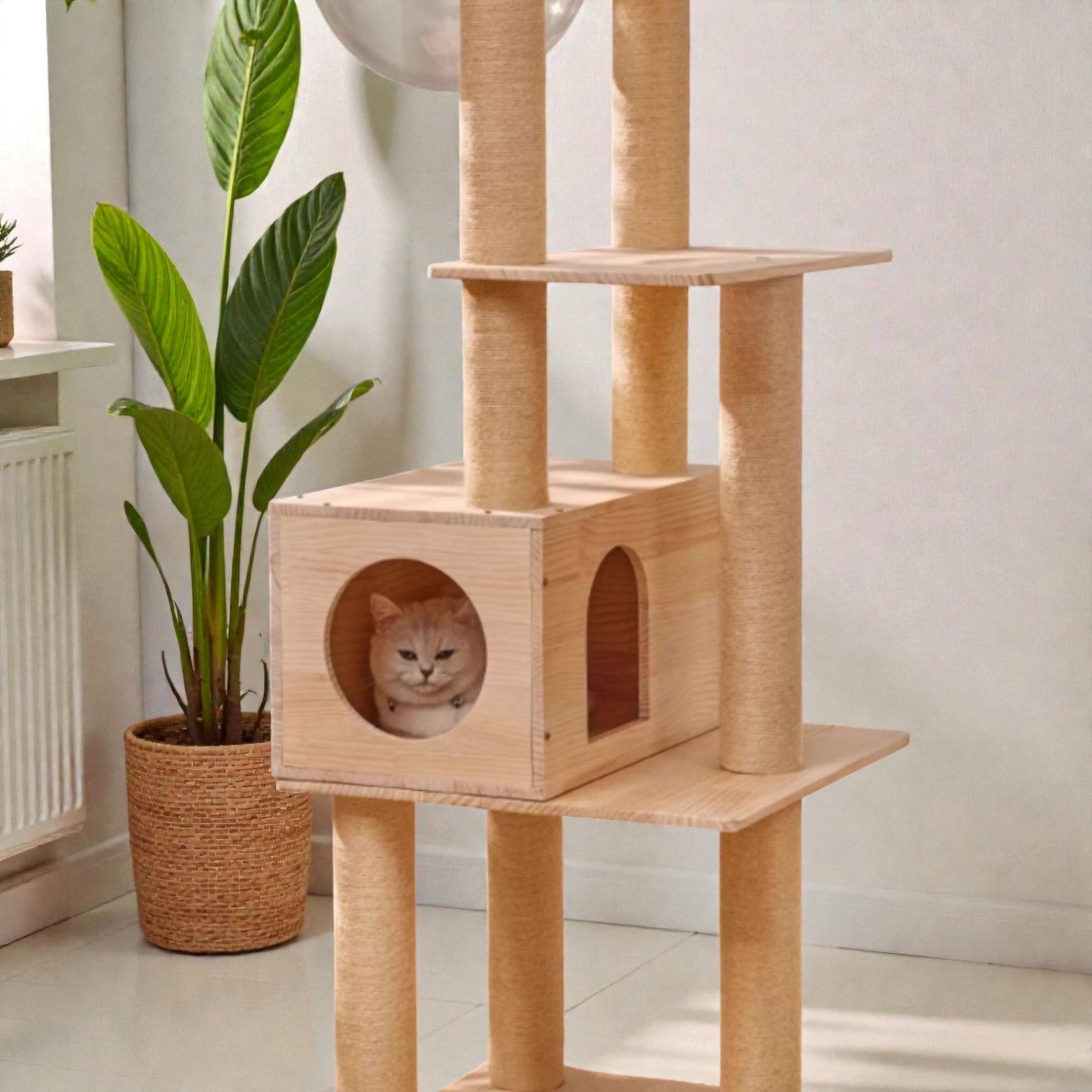 Natural oak provides ample weight and stability; selected imported jute rope is sturdy, wear-resistant, thick, and stable, not easily shaken, deformed, or moldy.